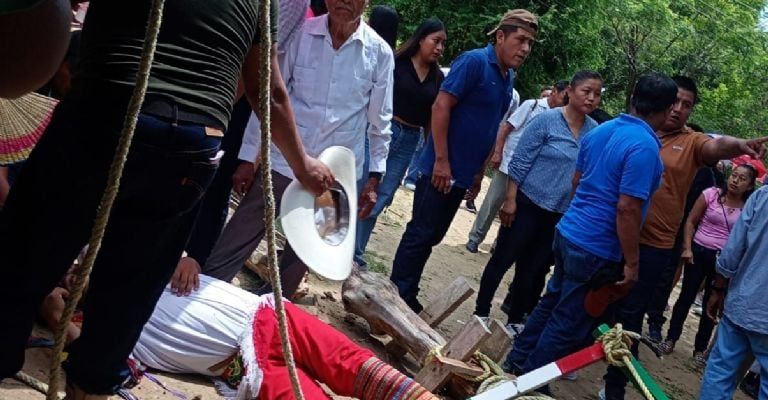 Los Voladores de Papantla, acudieron a la mencionada comunidad a una ceremonia religiosa católica dedicada al Sagrado Corazón de Jesús.