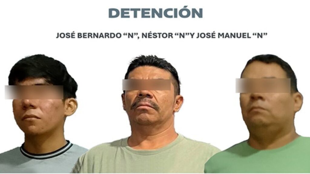 Se trata de José Bernardo “N”, de 19 años, José Manuel “N”, de 47 años, y Néstor “N”, de 46 años, quienes fueron detenidos por delito contra la salud, durante un cateo a una casa presuntamente utilizada para la venta y distribución de drogas en la zona Oriente.