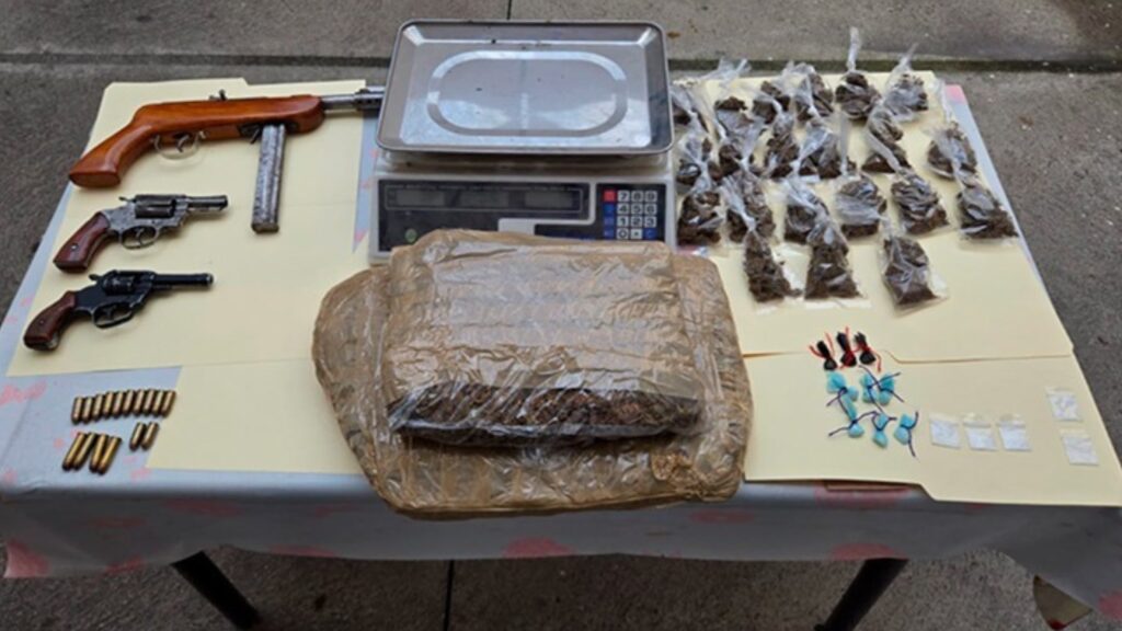 •Las diligencias arrojaron el decomiso de marihuana, probables dosis de “cristal” y armas de fuego.