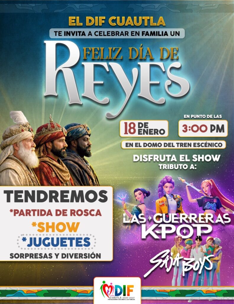 Cuautla, Morelos; 13 de enero 2026 – La presidenta del Sistema DIF Municipal de Cuautla, Diana Laura Corona Rivera, anunció a través de sus redes sociales oficiales del organismo y de su página personal, la realización del tradicional festejo por el Día de Reyes, dirigido a las niñas y niños del municipio.