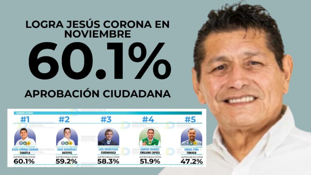 •El alcalde de Cuautla alcanza el 60.1% de aprobación en noviembre según Demoscopía Digital. Por Andrés…