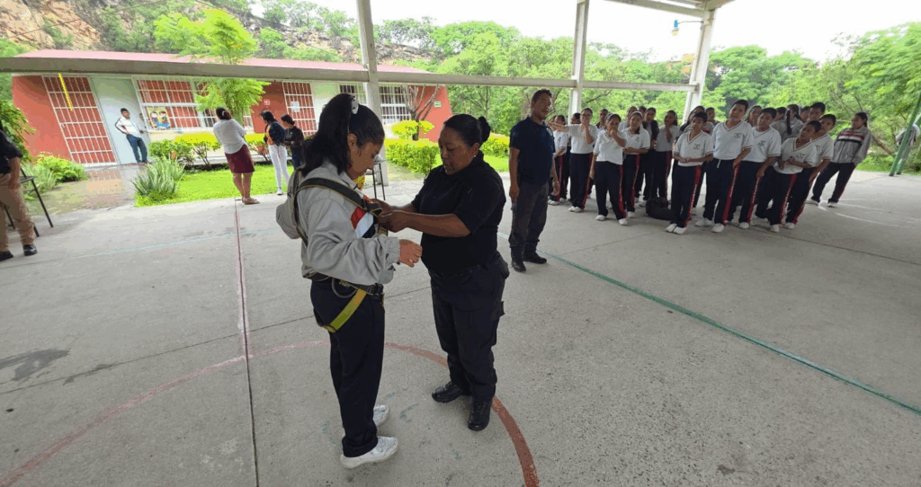 Capacitan a estudiantes de Emiliano Zapata en técnicas de rescate con taller de rapel
