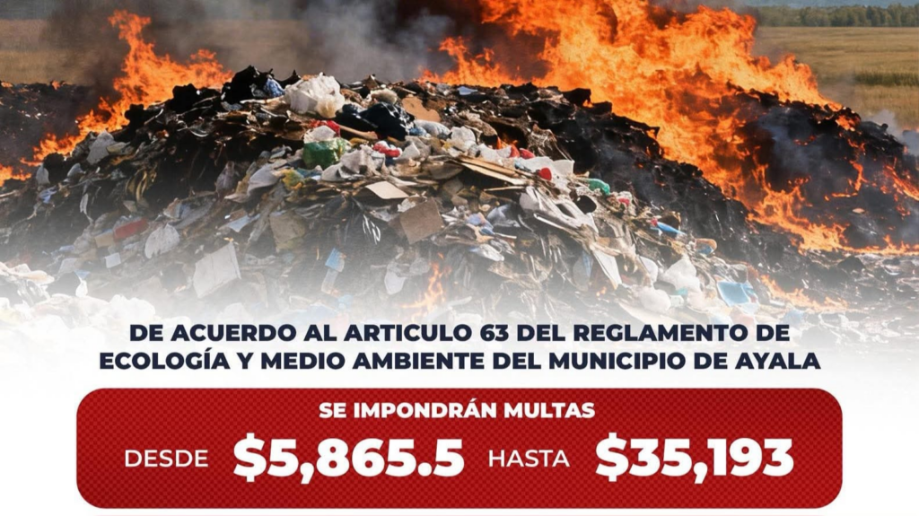 Ayala, Morelos; 21 de marzo de 2026. El Gobierno Municipal de Ayala, exhortó a la población a evitar la quema y el depósito de basura en espacios públicos como parte de las acciones para prevenir incendios y proteger el medio ambiente.